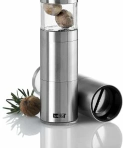 Die Muskatmühle Muskatino verfügt über scharfe Messer, die den Muskat hobeln, wodurch ein volles Aroma zum Tragen kommt. Dies wird unterstützt von der dem Messer vorgespannten Feder und Dornen, die die Muskatnuss kraftvoll über das Messer führen. Das Produkt zeichnet sich außerdem durch ein schlichtes, zeitloses und äußerst funktionales Design aus, denn die Mühle ist einfach zu öffnen aufgrund des Bajonettverschlusses. Aufgrund des transparenten Vorratsbehälters aus Acryl lassen sich das Mahlgut und dessen Menge leicht erkennen.