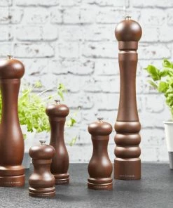 Die klassischen Capstan-Mühlen aus dunkel gebeiztem Holz verleihen jedem Esstisch Raffinesse. Stellen Sie den gewünschten Mahlgrad (von fein bis grobkörnig) ein, indem Sie einfach den Knopf am Deckel anziehen bzw. lösen. Diese Salzmühle verfügt über ein Mahlwerk aus Keramik. Wir empfehlen, in all unseren Mühlen hochwertige Pfefferkörner und grobes Meer- oder Steinsalz zu verwenden.
