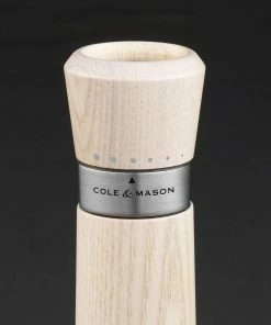 Die Lyndhurst Mühlen von Cole & Mason sind die perfekte Mischung aus stilvoller Raffinesse und überlegener Leistung. Hergestellt aus nachhaltig gewonnenem Eschenholz, das mit einem nordischen Weissfleck versehen ist, zeigt die natürliche Schönheit der Holzmaserung. Es ist eine schöne Ergänzung für jedes Zuhause. Als Teil der Cole & Mason Gourmet Precision-Reihe bietet es Ihnen das Vertrauen, den Geschmack jeder Mahlzeit durch professionelles Würzen zu verbessern. Die Mühlen verfügen über 6 voreingestellte Mahlstufen für Pfeffer und 3 voreingestellte Mahlstufen von fein bis grobkörnig, die über den Edelstahlring eingestellt werden können, die sich bewährt haben, um sicherzustellen, dass Sie immer das Beste aus Ihrer Mühle und das Beste aus Ihren Mahlzeiten herausholen. Ausgestattet mit dem Cole & Mason Precision+ Karbonstahlmahlwerk, das Pfefferkörner schält, anstatt sie zu zerdrücken, und diamantscharfer Keramik für Salz, um eine maximale Geschmacksfreisetzung aus jedem Dreh zu gewährleisten. Sie sind mit hochwertigen schwarzen Pfefferkörnern aus Vietnam und grobem Meersalz aus Belgien gefüllt, sodass Sie sie ab dem Moment, in dem Sie sie erhalten, verwenden können. Diese Umkehrmühle hält Ihre Arbeitsfläche und den Tisch sauber. Der Mechanismus befindet sich oben in der Mühle, welcher unter der Edelstahlscheibe verborgen ist.