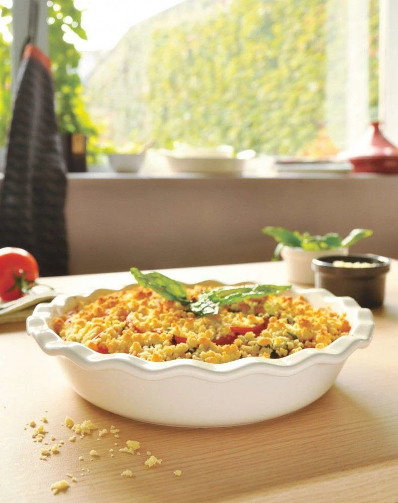 Ein guter Obstkuchen, der auf der Zunge zergeht, muss sanft und gleichmässig durchgebacken werden, ohne auszutrocknen: das Geheimnis – die Keramik-Form! Schneiden und servieren Sie den Kuchen gleich in der Form, noch lauwarm. Dies hier ist die klassische Form für französischen Clafoutis, oder für englische Pies. Hervorragend geeignet auch für einen guten Obstauflauf, Zwetschgen- oder Kirschkuchen, Kartoffeltorte mit Schinken und Käse. Oder auch einmal als hübsche Beilagenschüssel! Ihr Kuchen wird darin gleichmäßig durch gebacken. Für Gratins, Aufläufe und Lasagne ebenso gut geeignet wie für Obst- oder Schokoladenkuchen. Die Backform ist schnittfest und leicht zu reinigen oder einfach als ausgefallene, fröhliche Servierplatte für den gedeckten Tisch zu verwenden.