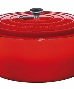 Eigenschaften des Küchenprofi Bratentopf oval aus Gusseisen: