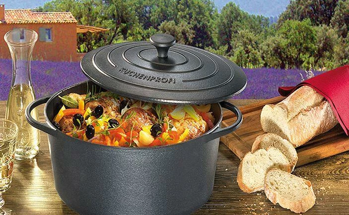 Küchenprofi aus der Serie Provence ermöglicht eine optimale Hitzeverteilung, denn das Gusseisen sorgt dafür, dass die Wärme über den Boden und den Rand gleichmässig verteilt und an das Gargut weitergegeben wird. Der Gänsebräter ist besonders energiesparend und ist geeignet für Induktionsherde sowie alle anderen Herdarten. Natürlich können Sie den Gänsebräter Provence von Küchenprofi auch im Backofen verwenden. Die Deckelknöpfe als auch der Gussdeckel sind bis 250°C backofenfest und wärmestabil.
