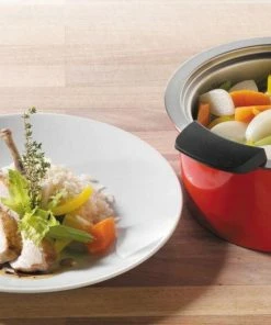 Kuhn Rikon Hotpan Gourmettopf in rot. Der Kochtopf mit dem besonderen Etwas, dank der Kombination von Kochtopf und Warmhalteschale.