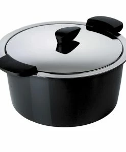 Hotpan Servierkochtopf in schwarz. Der Kochtopf mit dem besonderen Etwas, dank der Kombination von Kochtopf und Warmhalteschale. Kochen und Servieren in einem.