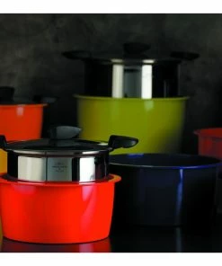 Der Servierkochtopf Hotpan von Kuhn Rikon erfüllt gleich zwei Eigenschaften. Er ist Kochtopf und Warmhalteschale in einem. Das Kochgut muss nur kurz erhitzt werden und gart anschließend im Hotpan alleine zu Ende. Durch die Verwendung von hochwertigen, rostfreiem Edelstahl und dem Superthermic® Sandwichboden ist der Gourmettopf für alle Herdarten und Kochmethoden einsetzbar und sorgt mit seinen ergonomischen Griffen für eine sicheren Halt. Der doppelwandige, luftdichte Isolierdeckel sorgt für eine vitaminschonende Zubereitung. Die Warmehalteschüssel besteht aus Melamin und kann vielseitig eingesetzt werden. Zudem ist sie spülmaschinefest und kann problemlos in den Gefrierschrank gestellt werden.