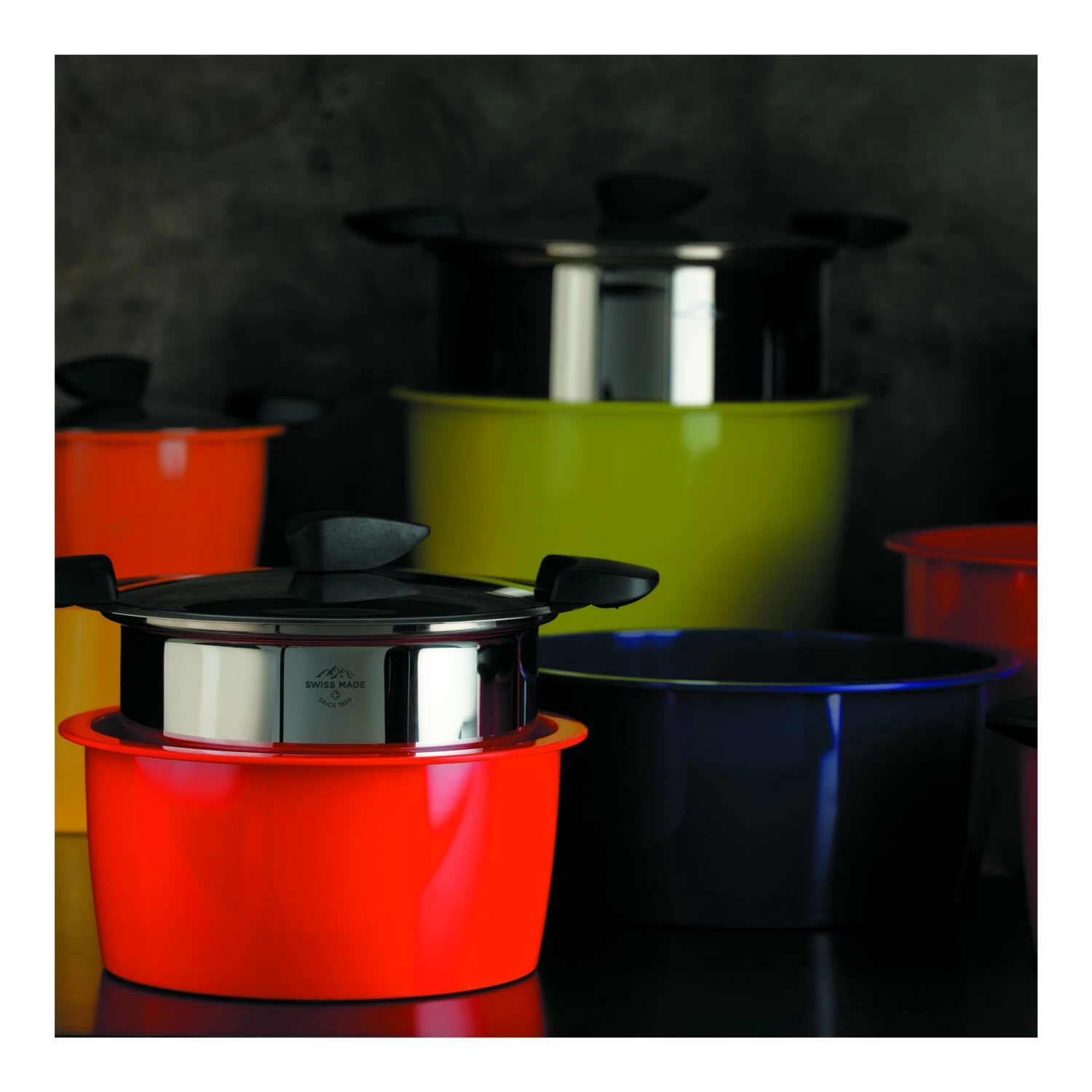 Ökologisches und gesundes Essen in einem: Mit dem Hotplan Servierkochtopf von Kuhn Rikon werden Gerichte in Minutenschnelle zubereitet und gleichzeitig bis zu 60% weniger Energie verbraucht. Gleichzeitig können die zubereiteten Speisen für zwei Stunden heiss gehalten werden.