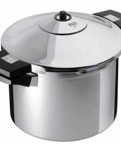 Duromatic Inox. Dampfgarsystem mit großzügigen Seitengriffen für schwere Inhalte, Überdrucksicherung und automatischer Deckelverriegelung.