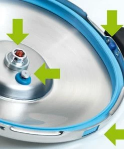 Der formschöne Klassiker im zeitlosem Design ist einfach zu bedienen und ideal für große und kleine Familien, Singles oder Paare. Die dreifache Überdrucksicherung und automatische Deckelverriegelung sowie der Superthermic Sandwichboden sorgen für eine gleichmäßige Wärmeverteilung. Zusätzlich verfügt der Schnellkochtopf über zwei stabile Seitengriffe, einen Sicherheitsregler und Füllmengenskalierung.