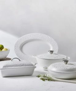 Le Creuset veredelt die Auflaufform mit feinen Verzierungen und einem warmen hellen Farbton!