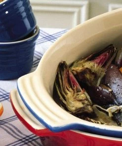 Steinzeug ist auch hygienischer als Steingut und effizienter im Backofen und in der Mikrowelle. Es eignet sich selbst zur Aufbewahrung im Kühlschrank und Tiefkühltruhe. Da die Formen selbst hohe Temperaturschwankungen aushalten, können sie aus der Gefriertruhe bzw. dem Kühlschrank direkt in den Backofen gestellt werden.