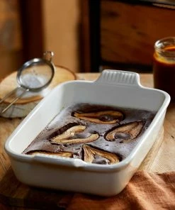 Auflaufform Tradition, rechteckig in schwarz glänzend. Die hohe Poterie-Auflaufform ist optimal zum Gratinieren und Überbacken. Der Teig wird in der Form aus Steinzeug gleichmäßig durchgebacken und von allen Seiten goldbraun und knusprig. Die praktischen Seitengriffe erleichtern die Handhabung.
