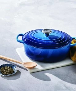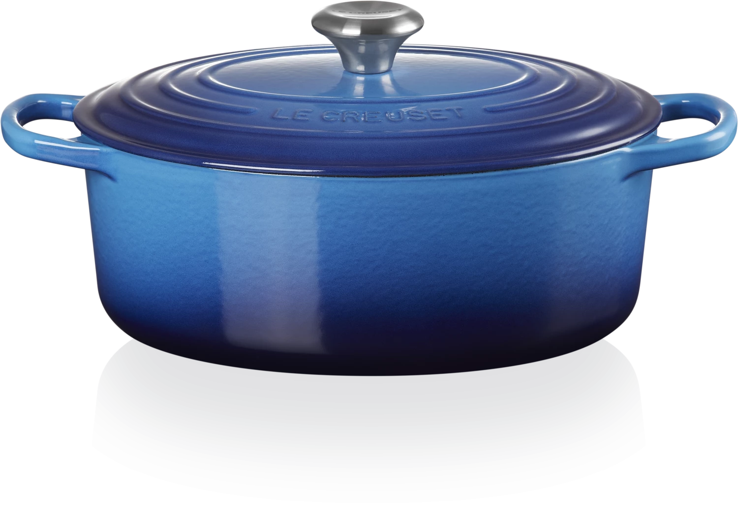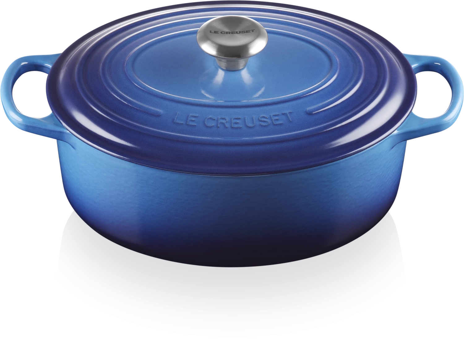 Le Creuset Bräter Signature oval in azure. Ideal für größere Braten und Geflügel am Stück.