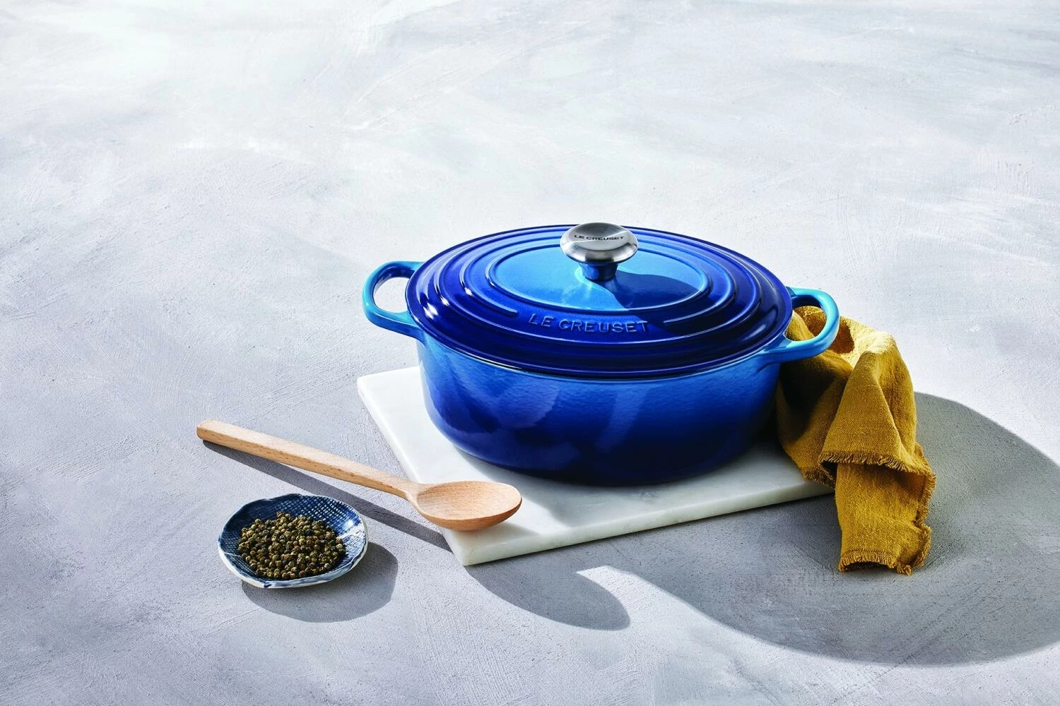Die neue Serie Signature von Le Creuset kombiniert neue mit bewährten Produkteigenschaften. Die Signature Produkte verfügen über eine speziell entwickelte strapazierfähige Innen-Emaille, die nicht an Glanz und Farbe verliert und zudem eine hohe Widerstandskraft gegen Abnutzung aufweist. Außerdem sorgt die helle und lebendige Farbe der Innen-Emaille für ein schönes Aussehen. Alle Signature Produkte verfügen über große Griffe, wodurch ein leichter, sicherer Transport vom Herd in den Backofen und von der Küche zum Esstisch gewährleistet wird. Der ergonomische Knopf aus gebürstetem Edelstahl besticht nicht nur durch sein formschönes Design, sondern auch durch seine Hitzebeständigkeit bis zu 260 °C. Das moderne, frische Aussehen von Signature wird von einem Deckel mit deutlicher Markenerkennung komplettiert, in dessen Rand Stabilisierer integriert sind, die verhindern, dass der Deckel wackelt. Somit ist für mehr Sicherheit gesorgt.