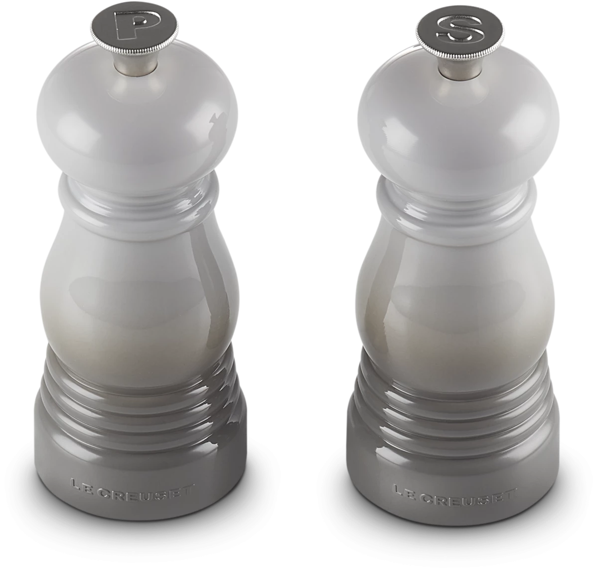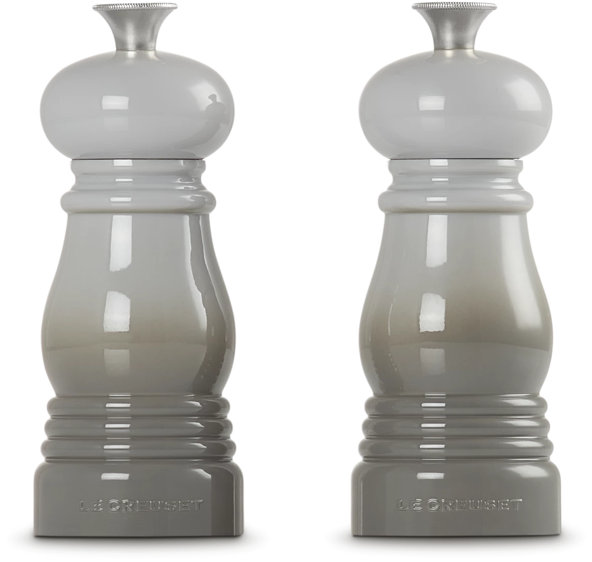 Le Creuset Mühlen Set klein in perlgrau. Die Mühlen mit erstklassigem Keramikmahlwerk.