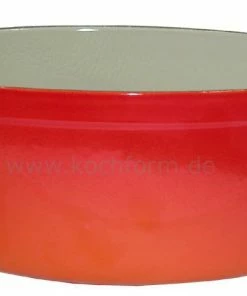 Le Creuset Saftbräter Doufeu oval aus Gusseisen in ofenrot. Der