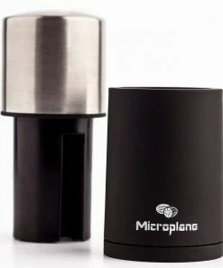 Microplane Muskatmühle in edelstahl. Hiermit werden Gewürze wie Muskatnuss, Tonkabohnen und Zimt mühelos gerieben und aufbewahrt.