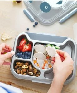 Ein Fach für Gemüse, ein weiteres für das Hauptgericht und auch eins für Obst – mit der Brotdose mit 5 Fächern MB Wonder blau Panda essen kleine und auch größere Feinschmecker ganz nach ihrem Bedarf und entdecken so in aller Ruhe eigene Vorlieben, Geschmäcker und Variationen. Selbst ein Fach für eigenes Besteck ist vorgesehen (separat erhältlich).