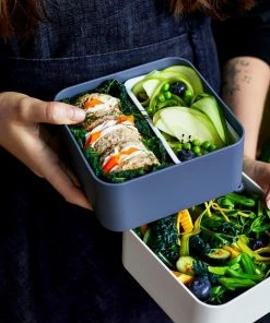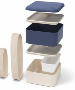 Monbento MB Square Bento-Box in blue natural, made in France. Moderne Lunchbox im quadratischen Design. Mit unterschiedlich großen Behältern, Deckeln und Kästchen ist die Bento-Box super flexibel. Auch ideal für Sandwichs und größere Portionen. Praktisch, dicht und sicher.