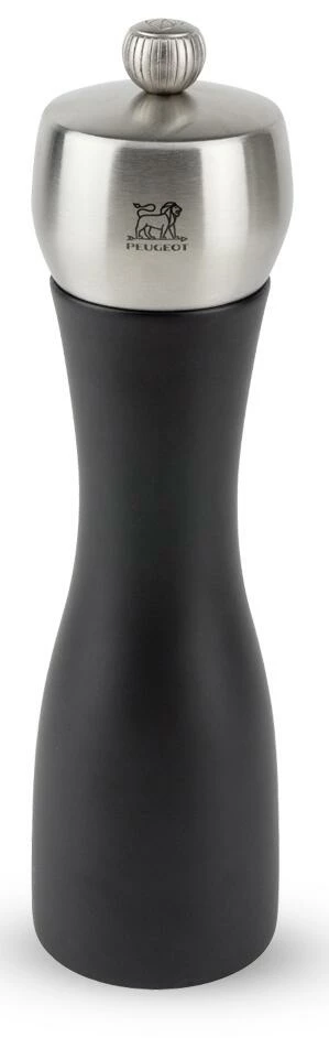 Pfeffermühle Fidji in Buche schwarz matt. Das Mahlwerk der PEUGEOT Pfeffermühle, bestehend aus einer zweireihigen Spiralverzahnung, führt und hält die Pfefferkörner für ein perfektes Mahlergebnis.