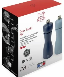 PEUGEOT Tahiti Duo Mühlenset Luft, nachtblau & himmelblau. Mühlenset von Peugeot, das auf sanfte Farben ganz im Sinne der Elemente setzt. Mit bewährtem Peugeot Mahlwerk.