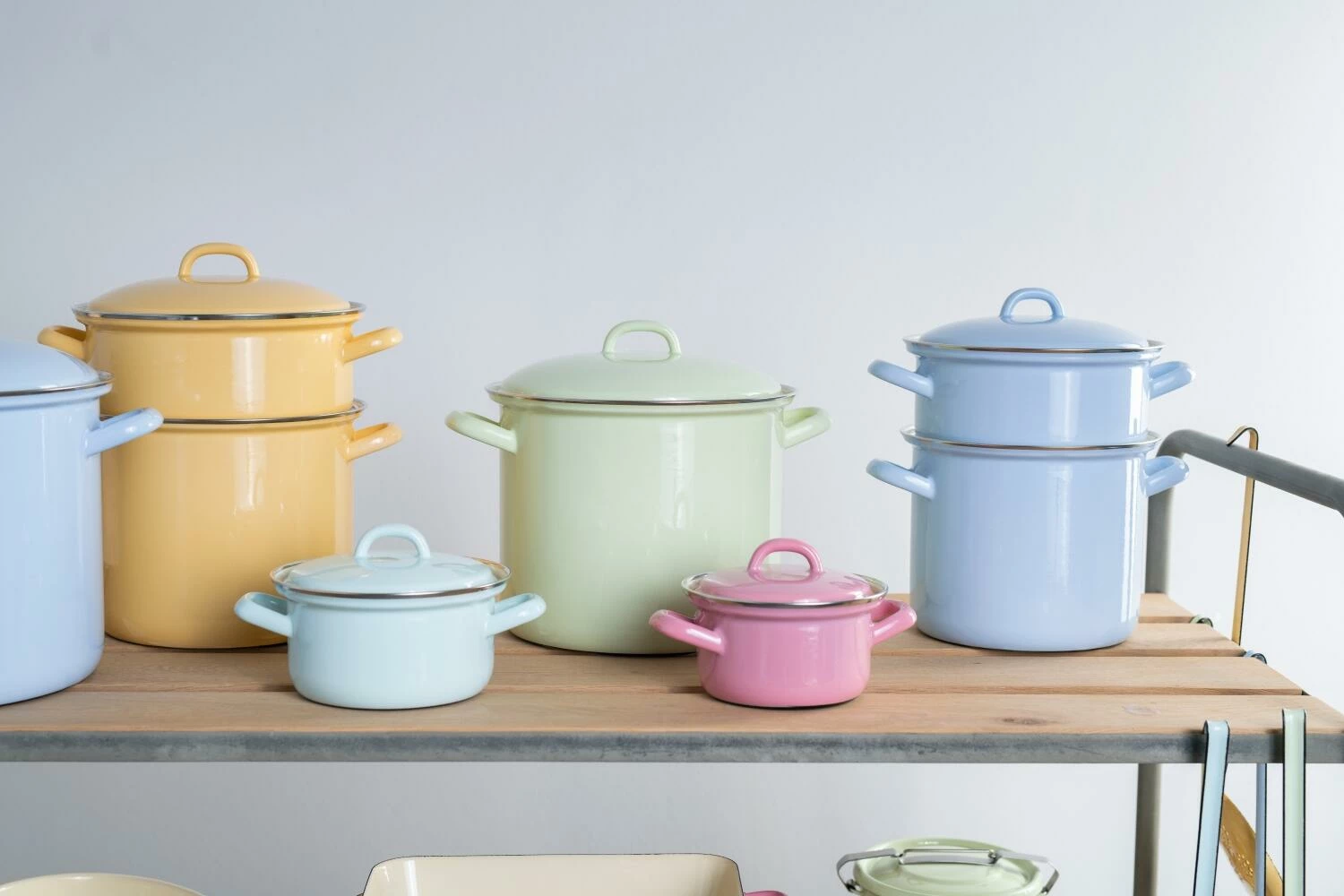 Bei der Pastellfarben-Serie von Riess wird auf buntes Farbenspiel gesetzt. In pastell-blau ist die Kasserolle mit 18 und 24 cm Durchmesser erhältlich, in nilgrün finden Sie die Kasserolle mit 22 cm Durchmesser und goldgelb bildet mit 20 cm den Abschluss der typischen Riess-Pastellfarben. Dazu kommt noch eine kleine Kasserolle in türkis mit 14 cm Durchmesser sowie eine mit 16 cm Durchmesser in pastell-gelb.