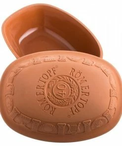 Durch die poröse Innenglasur im Unterteil lässt sich der Römertopf besonders gut reinigen und ist sogar für die Spülmaschine geeignet. Mit Gebrauchsanweisung und Rezeptvorschlägen.