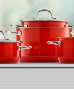 - Ganzmetallgriffe: Modern, ergonomisch, hitzeisolierend und absolut backofenfest. Entwickelt für eine sichere Handhabung