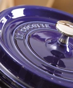 Staub Cocotte rund aus Gusseisen mit Dämpfeinsatz in dunkelblau. Der Allrounder von