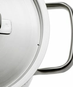Dank seines stabilen und unverwüstlichen Materials aus Cromargan® Edelstahl, steht der Topf fest auf jedem Herd, auch Induktion und ist beständig gegen Speisesäuren sowie geruchs- und geschmacksneutral. Der TransTherm® Allherdboden nimmt die Hitze schnell auf, verteilt sie gleichmäßig und speichert sie lange in seinem Inneren. Die stabilen, innen hohlen Griffe liegen gut in der Hand. Somit werden die Griffe beim Kochen nicht heiß. Der schwere Aufliegedeckel verschließt sicher den Topf, lässt sich bei Bedarf aber auch schnell zur Seite schieben. Zusätzlich sorgen die integrierten Deckelöffnungen für einen kontrollierten Dampfabzug und mit der Innenskalierung lassen sich Flüssigkeiten passgenau in den Topf einfüllen. Durch den breiten Schüttrand lassen sich Flüssigkeiten tropfrei wieder ausgießen.