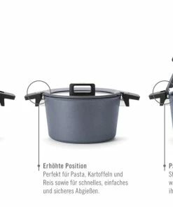 Der Silikoneinsatz ergänzt fünf weitere Funktionen und und macht concept plus zu einer einzigartigen und multifunktionalen Kochgeschirr-Serie aus gegossenem Aluminium.